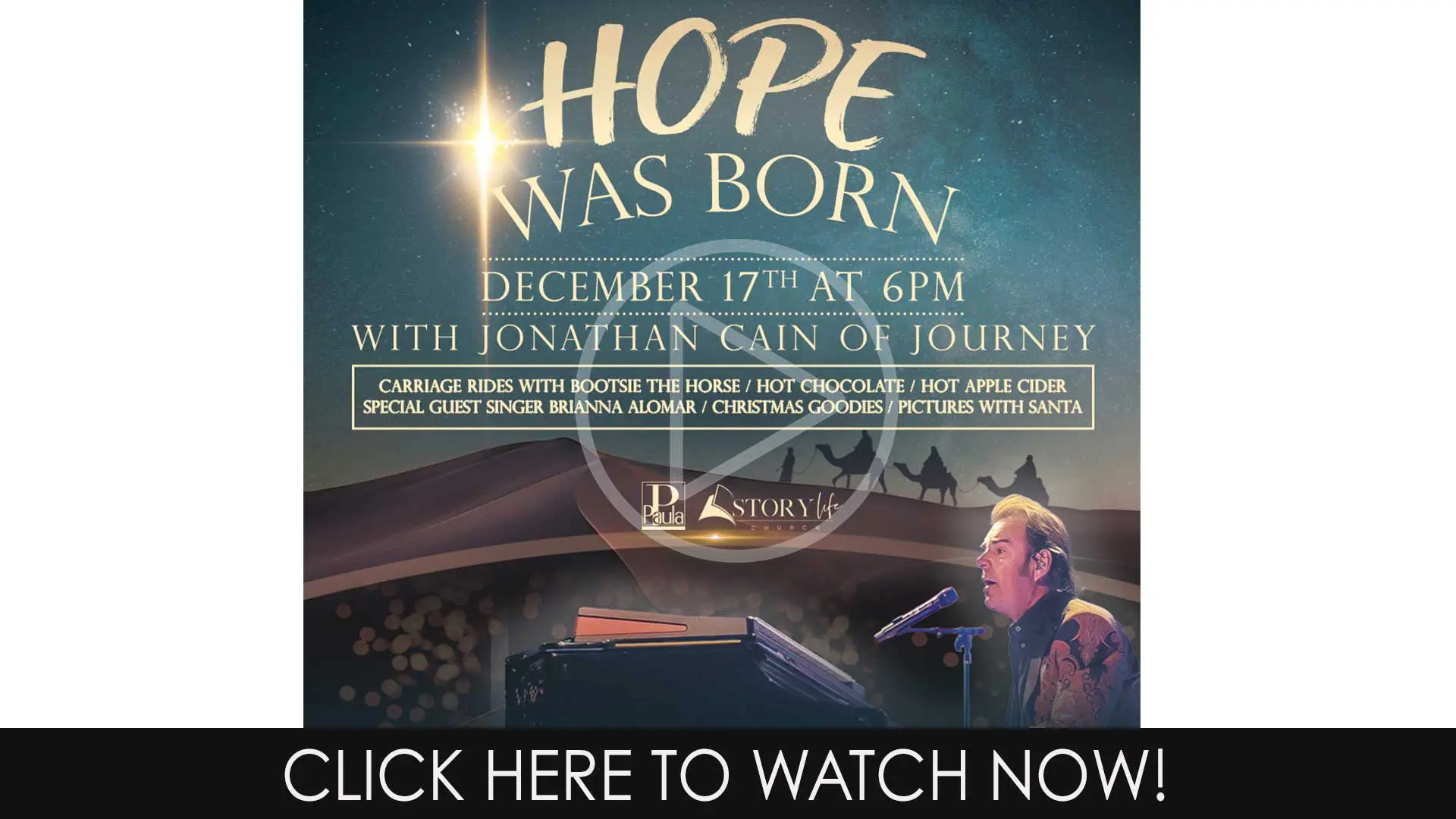 Join us December 17th at 6pm for a FREE Special Christmas Concert “HOPE WAS BORN” with Jonathan Cain, Hall of Fame Songwriter & Keyboardist from the Rock Band Journey!