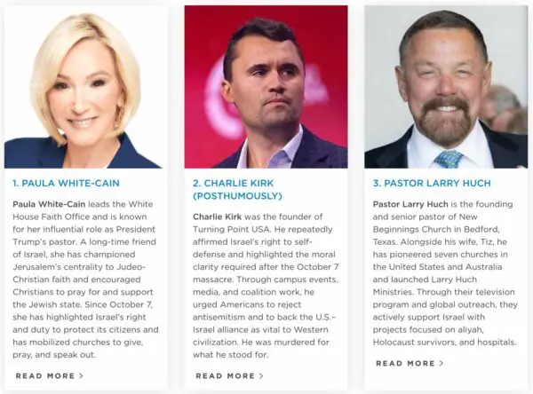 “The Christian leaders included in this exclusive list express their love and support for the State of Israel through meaningful action, rooted in their deeply held faith. Since October 7th, each of the Christian Allies listed below has been particularly vocal in their advocacy, positioning themselves as some of the most prominent defenders of Israel globally.