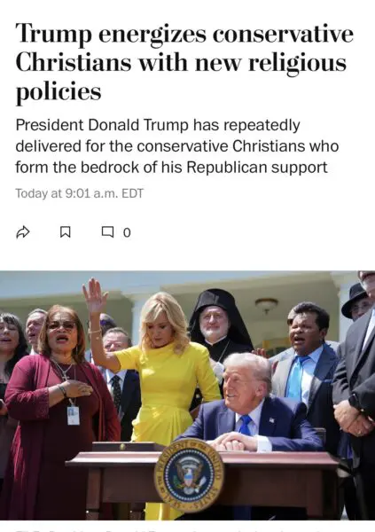 The Washington Post reported “Trump energizes conservative Christians with new religious policies”