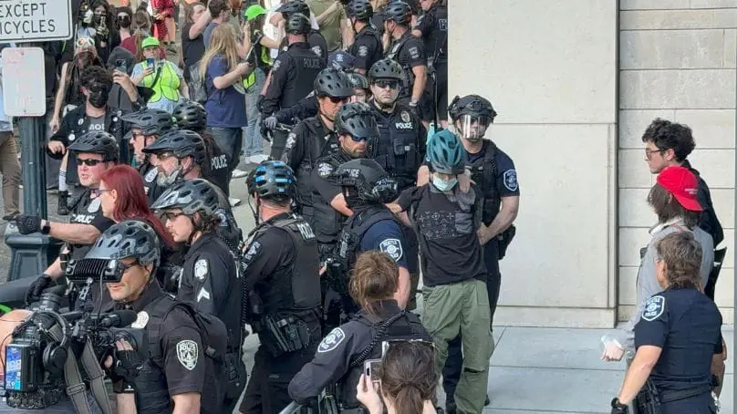 Seattle police arrested eight people Tuesday—several for alleged assault—after a protest and counterprotest outside City Hall turned violent. The clash came just days after a chaotic rally at Cal Anderson Park. And it earned the attention of the White House.